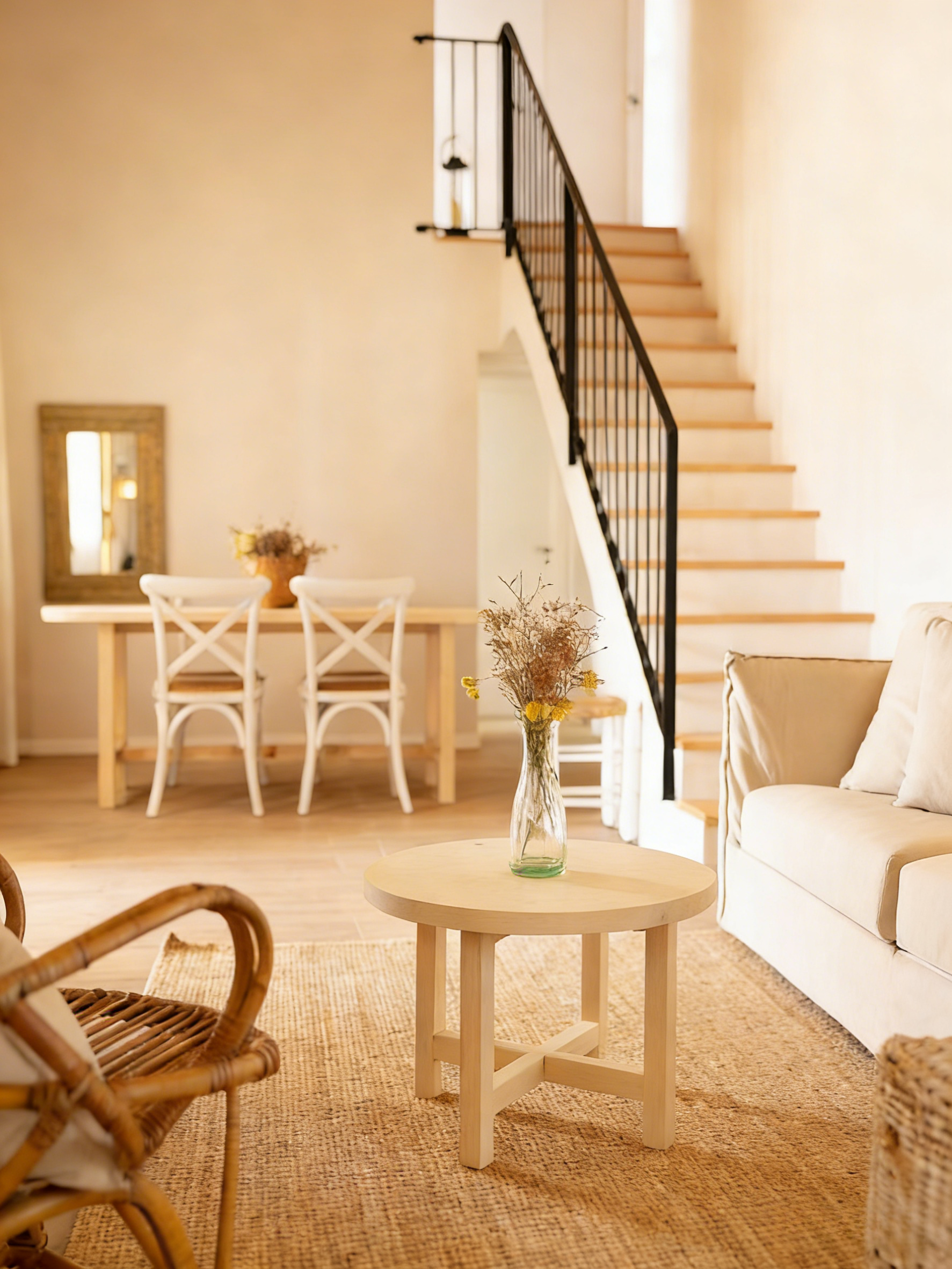 A complete and classic outdoor set, crafted from solid pine and designed for comfort, creating an inviting space for relaxation and dining in your garden.