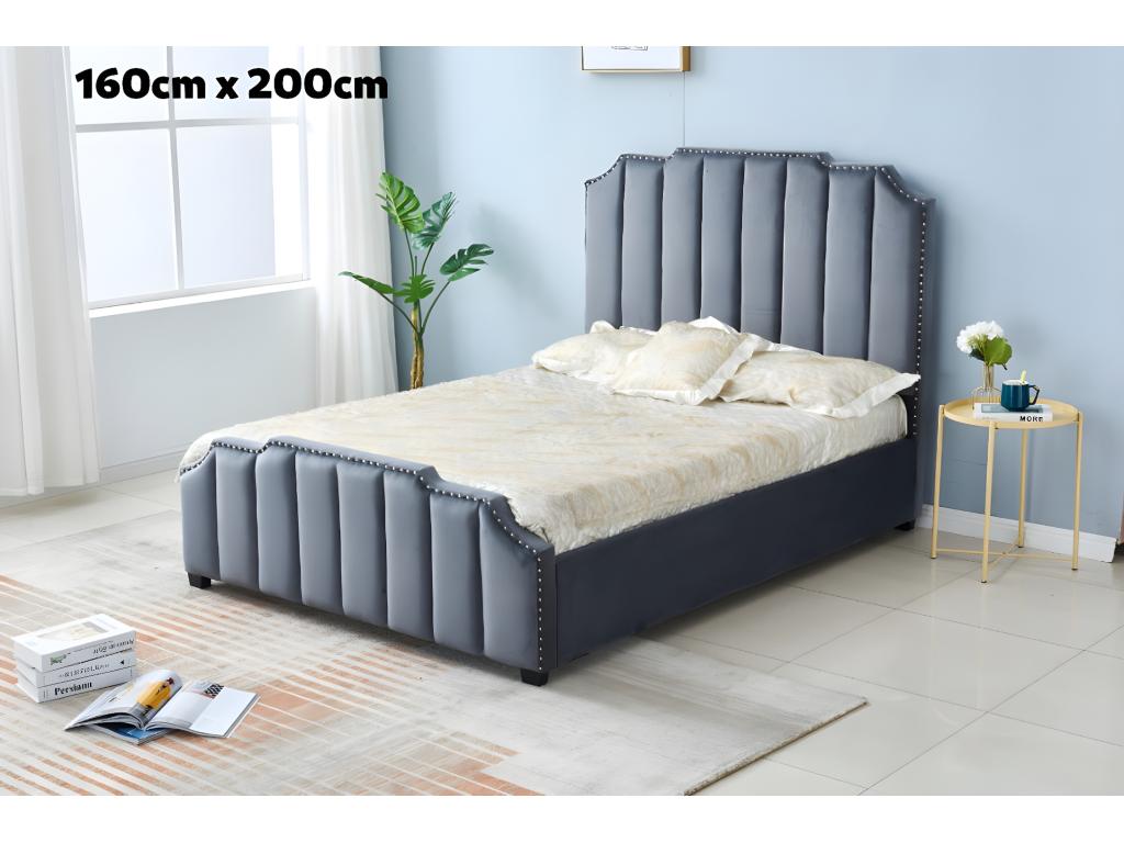 Adult bed 160x200 cm pepper grey velvet studded slatted base included QFKK84813