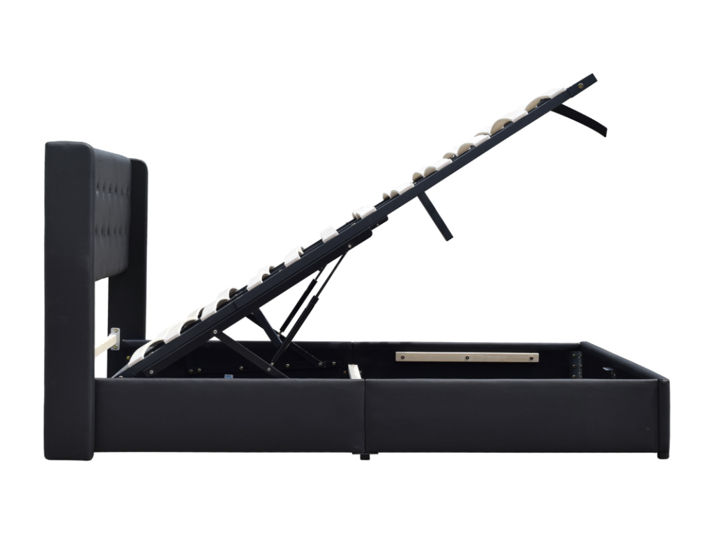 Removable cover storage bed 140x200 cm with upholstered headboard and 14 Meublori - Quick and easy assembly - Easy-care PVC faux leather upholstery